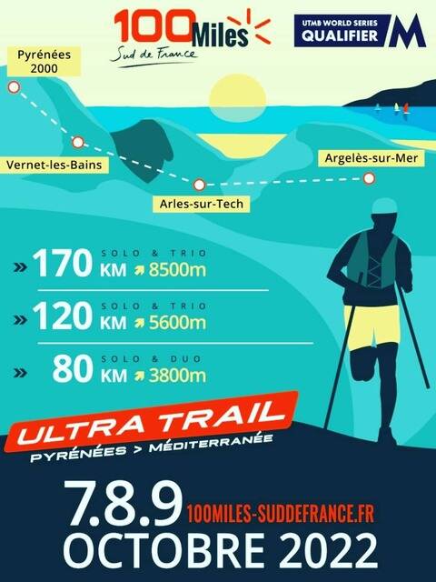 Le 100 Miles Sud de France est une opportunité unique de relier physiquement et en une seule course, la montagne et la mer. La traversée du département des Pyrénées Orientales, à la frontière de l’Espagne, constitue un challenge hors normes de 172 kms et 8420 m de D+. Des distances intermédiares sont proposées avec 120 et 80 kms pour respectivement 5600 et 3800 de D+. Le départ sera donné à plus de 1800 mètres d’altitude au cœur du Parc Naturel Régional des Pyrénées Catalanes à Font-Romeu pour arriver au pied de la chaîne des Albères, à proximité de la réserve naturelle de la Massane et de la réserve marine du littoral catalan à Argeles-sur-Mer.
