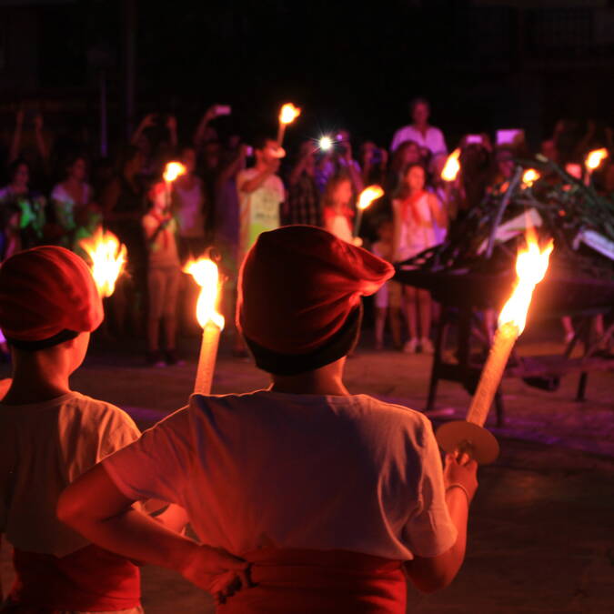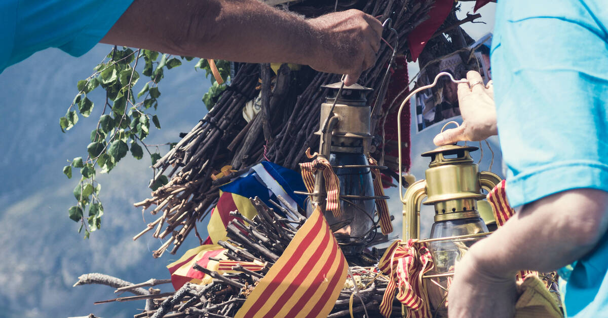 la fête des feux de la St jean, fête du solstice d’été et de l’amitié, est une tradition Catalane récente.Chaque village envoie sa délégation au sommet du Canigó le dimanche qui précède la Saint Jean. La troupe monte avec elle un fagot de bois au nom du village qui sera déposé autour de la croix du Canigó.
