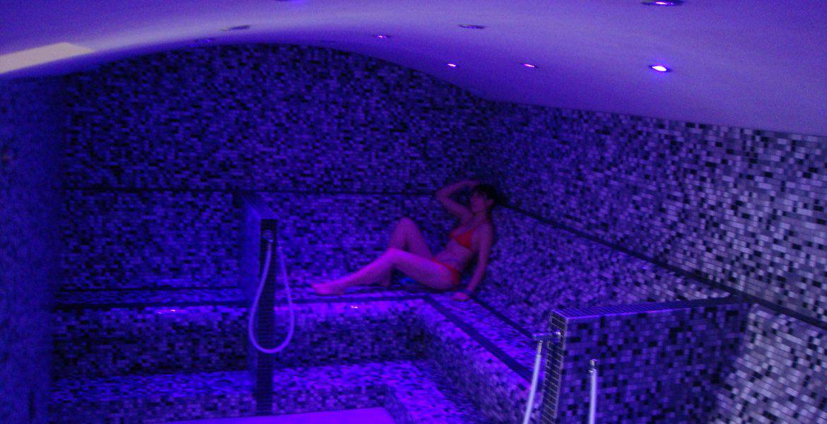 Après une bonne heure passée dans les bains extérieurs je décide de me diriger vers l'ascenseur pour descendre au spa. Je pousse la porte du hammam, m'assois et là je ferme les yeux et je me laisse bercer par le jeu de lumière et la musique.