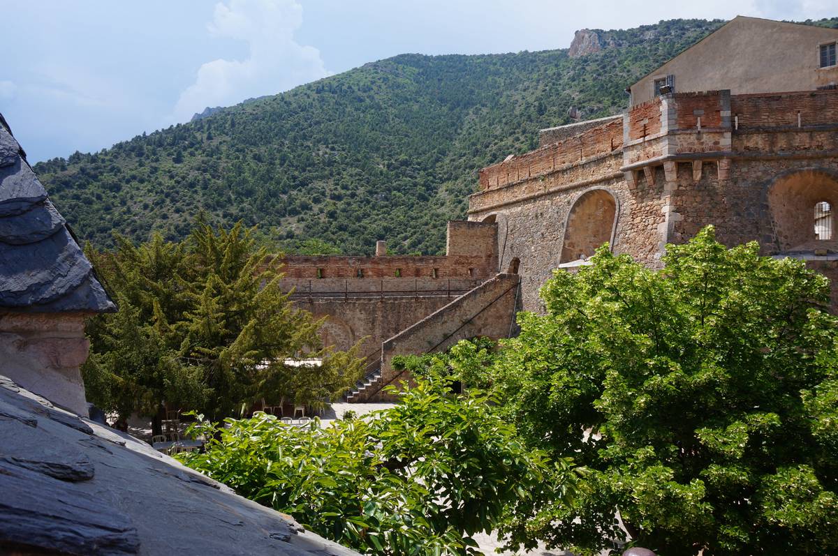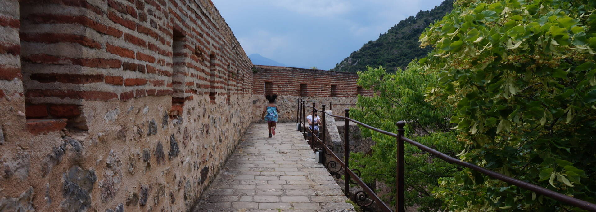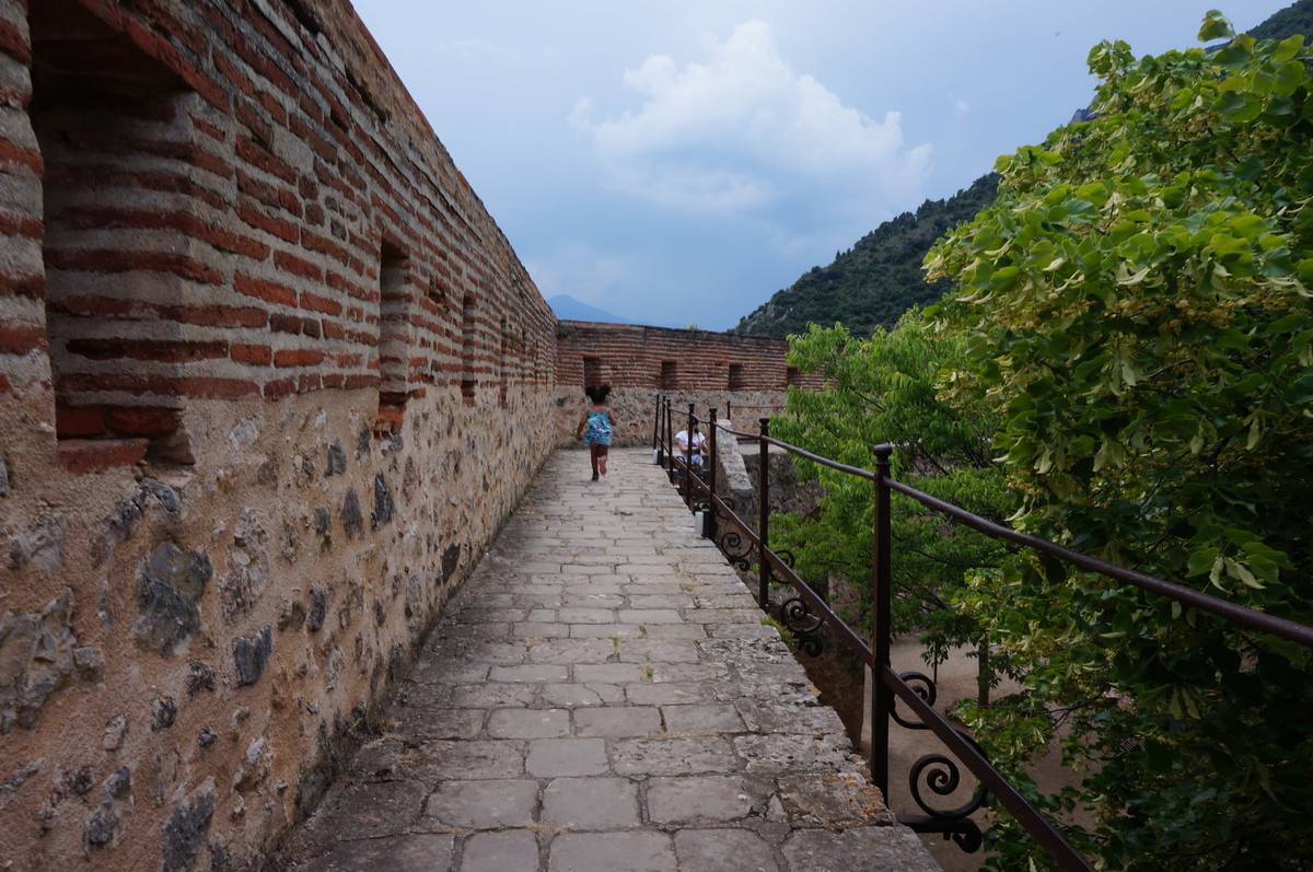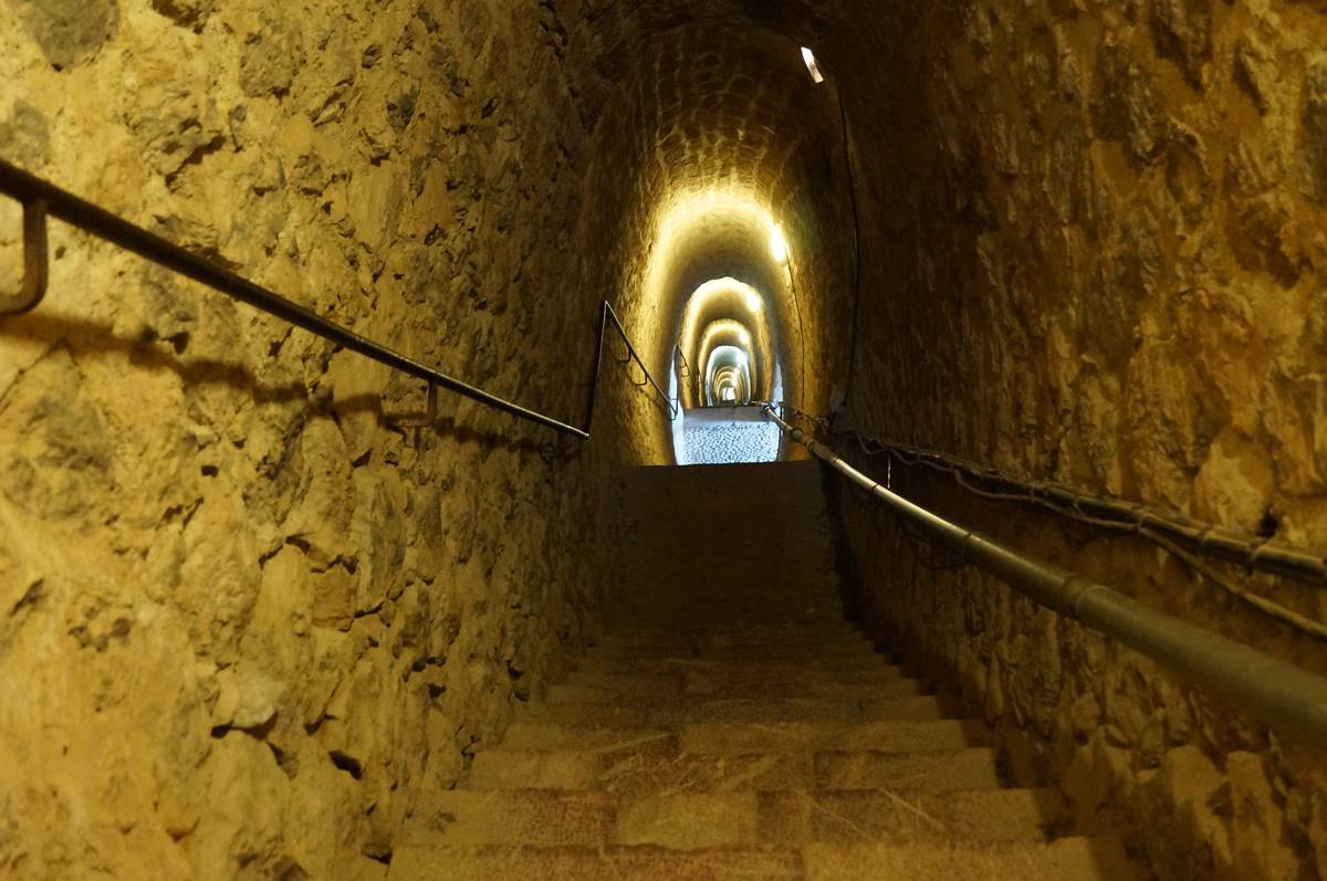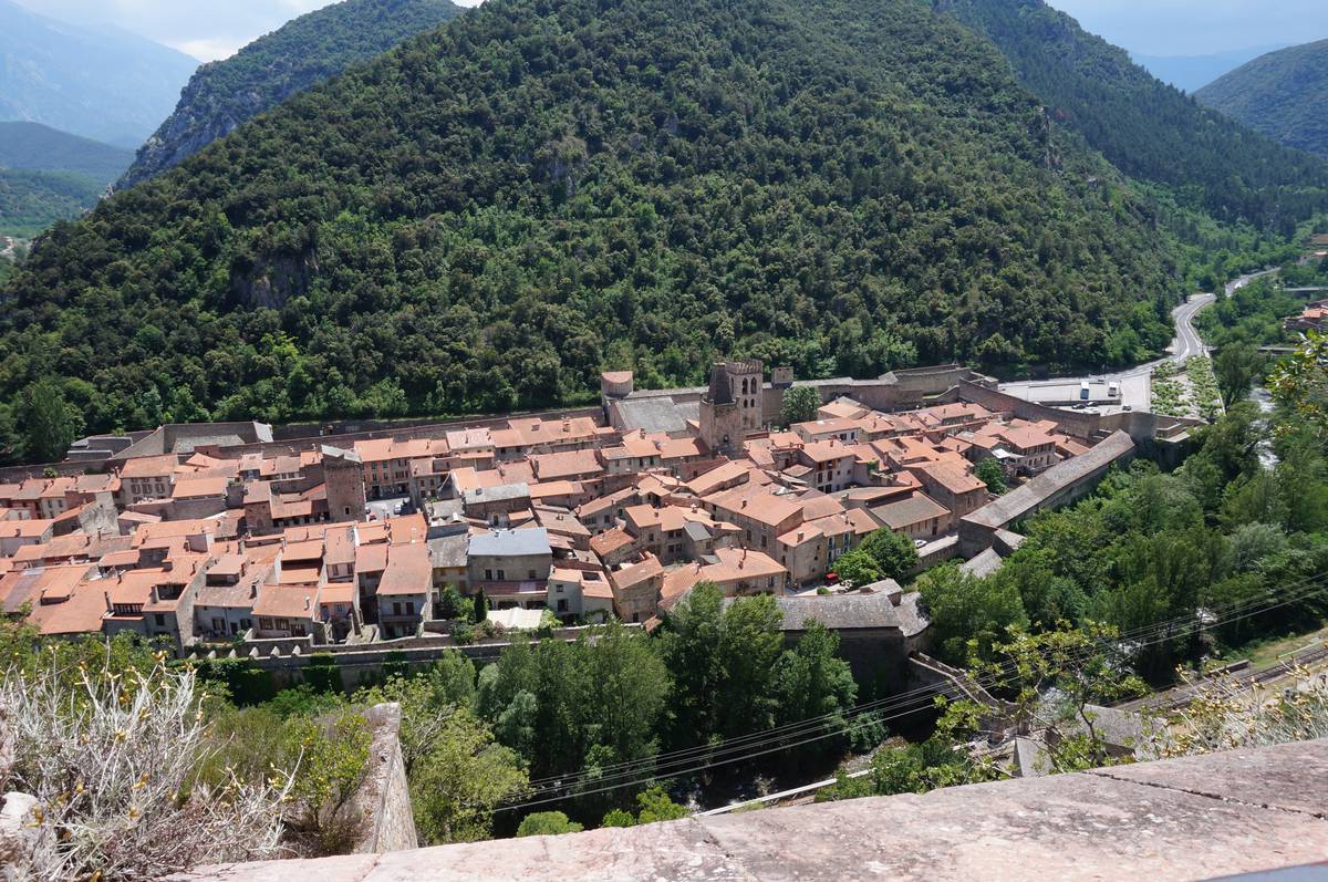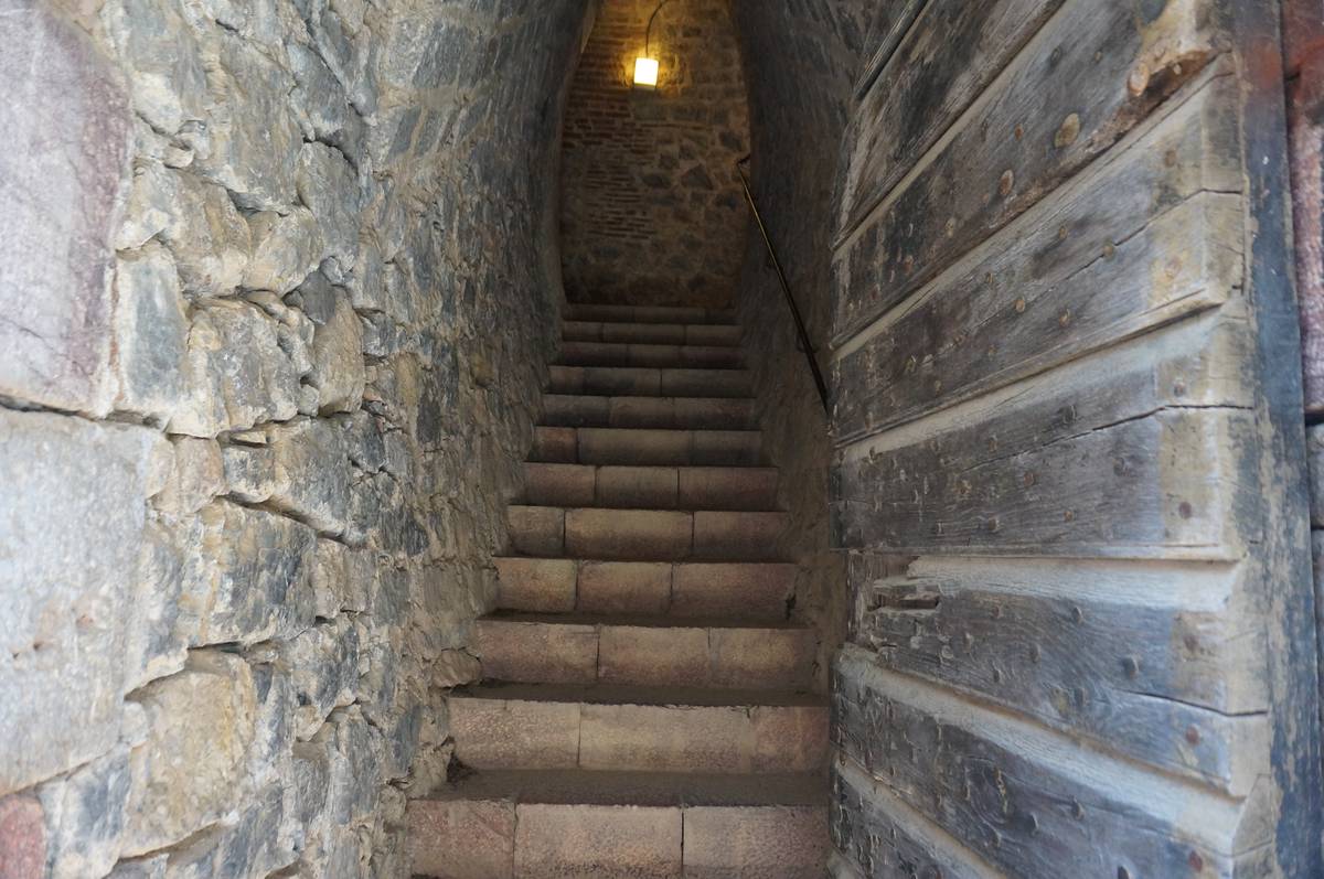 Comme beaucoup, nous comptons les marches, mais petit à petit, nous les oublions pour découvrir le paysage qui s'offre à nous à chaque palier. Le Canigó est majestueux d'ici. Nous prenons de la hauteur trés rapidement et sommes ébahies par la construction. Bien cachées et protégées par des murs d'une épaisseur incroyable, nous nous imaginons facilement soldats entrain de veiller sur notre contrée.