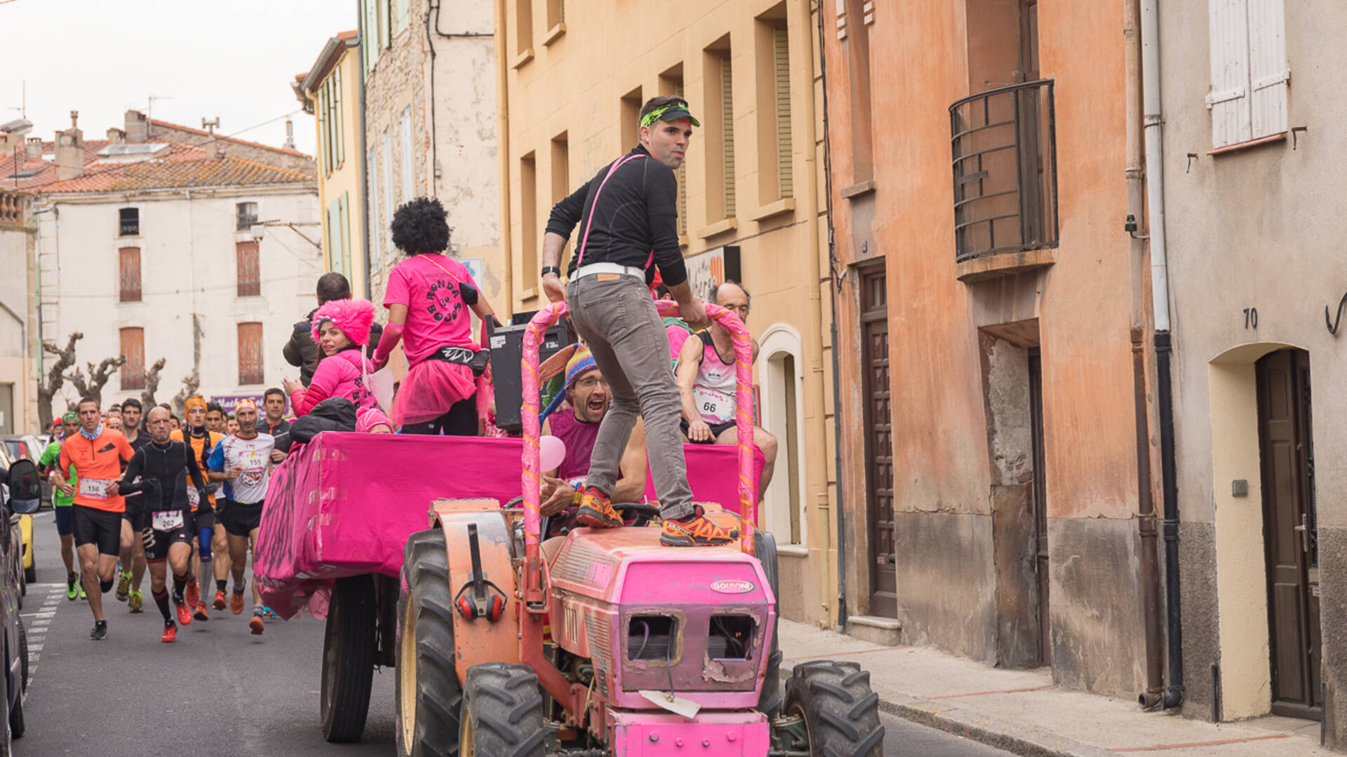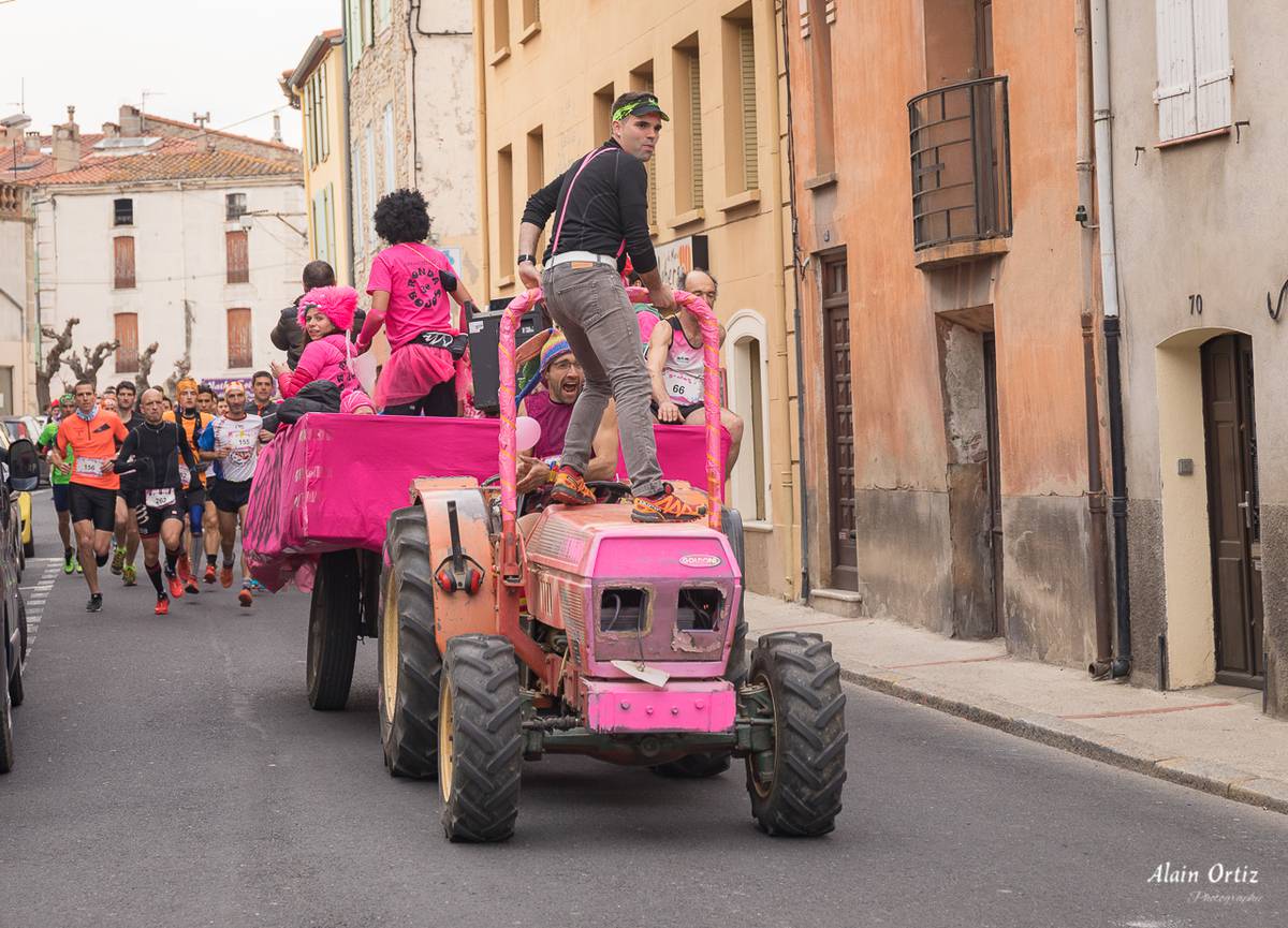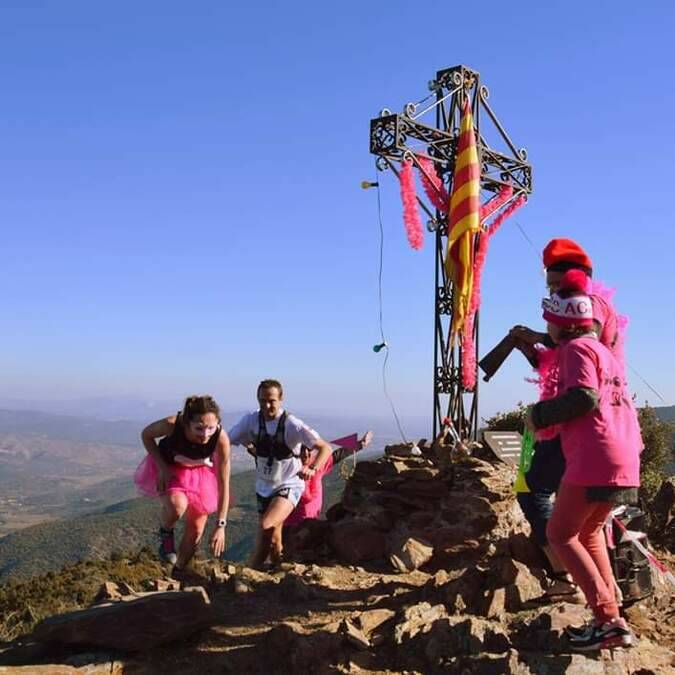Après avoir effectué le traditionnel tour dans le village, précédé par les bénévoles sur un tracteur encourageant les participants, nous montons dans les sous-bois jusqu’à la crête de « Vall lloreres ». Nous passons à proximité du village de Rigarda avant d’atteindre celui de Joch. Le parcours se poursuit par un petit sentier avec une vue magnifique sur la vallée de la Lentilla et le Canigó. Après avoir fourni quelques efforts supplémentaires, nous atteignons la croix en fer forgé du puig de les Feixes (1000 m) où nous attend un panorama à couper le souffle sur la plaine de Vinça et les villages alentours. Une pause s’impose au point culminant de la course pour profiter du point de vue, de l’ambiance des plus festive avec des bénévoles déguisés, de la musique et du ravitaillement !