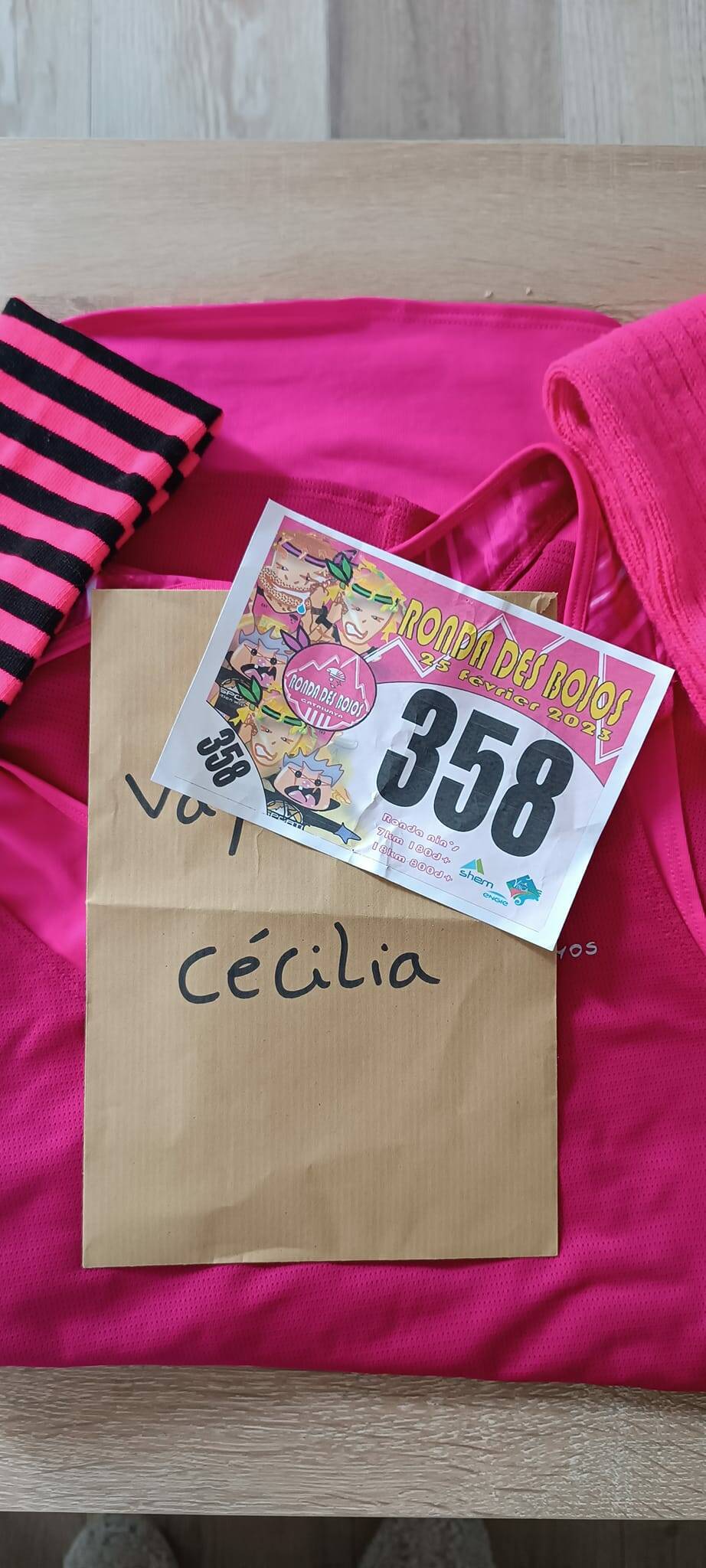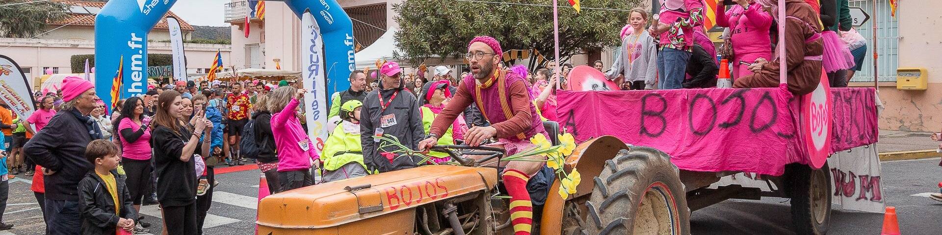 Qui dit première course dit petit parcours, je fais donc la Ronda Bomba qui fait partie de la Ronda des Bojos mais en 7km avec 200 mètres de dénivelé positif, on verra plus tard pour les 18km ! Mais ce n'est pas tout ! le principe de la Ronda des Bojos c'est de faire la course en étant déguisé, principalement en rose. Et oui car "Bojos" en catalan veut dire "fou" ce nom a été donné par les membres de l'association pour le côté festif et fou de montagne.