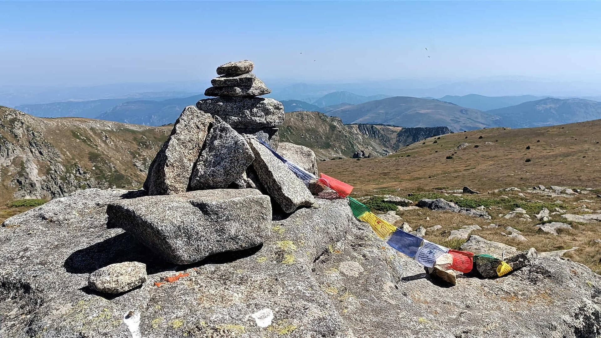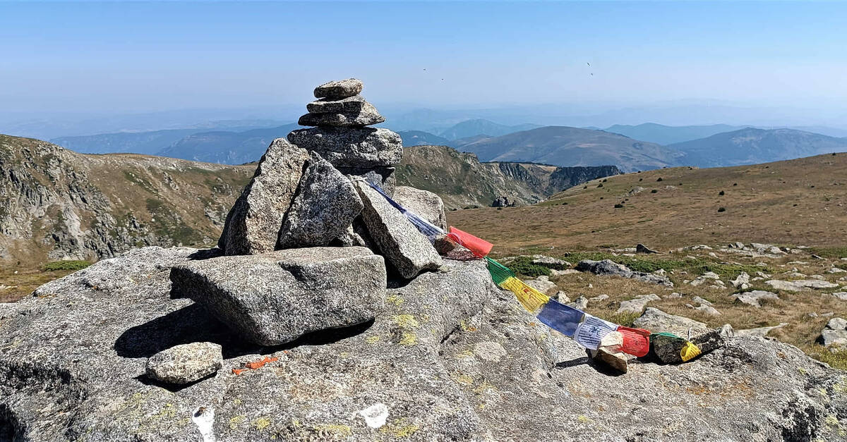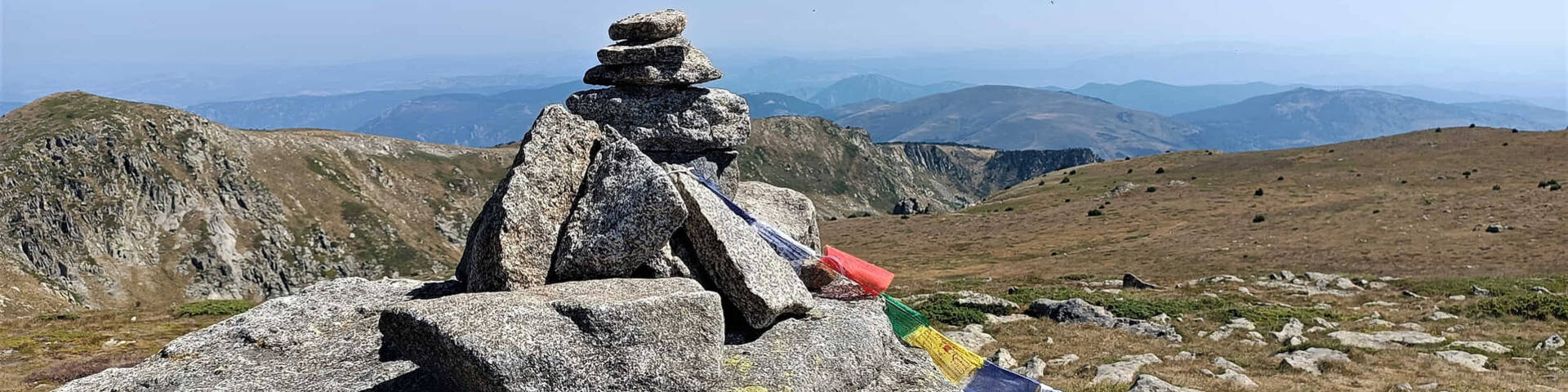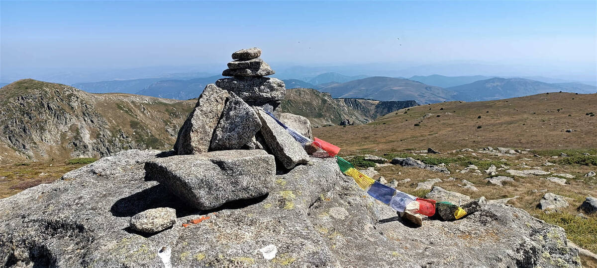 Nous poursuivons la montée, dernière côte raide avant l'arrivée au pic du Madres qui culmine à 2469 mètres d'altitude. Le pic est matérialisé par un abri de pierres sèches. D'ici quelle vue s'offre à nous ! C'est superbe, nous voyons tous les sommets voisins, le Canigó, le Capcir, les Corbières... un panorama à 360°
