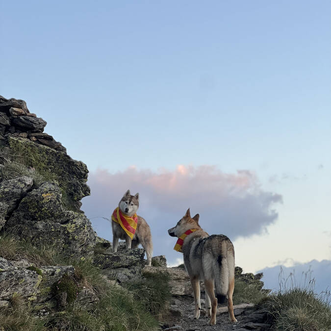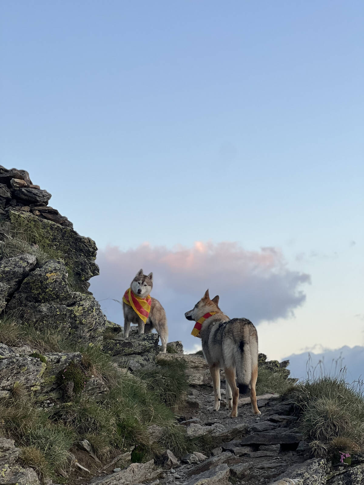 Veuillez noter que nos amis les chiens doivent être tenus en laisse sur le massif du Canigó. Les nôtres n’ont été lâchés qu’à certains moment pour prendre les photos, tout en s’assurant qu’ils ne perturbaient en rien la tranquillité du massif.