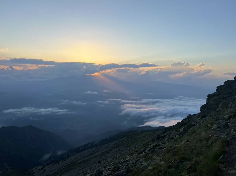 On y est, ça y est ! Le pic du Canigó qu’on voyait se rapprocher petit à petit tout au long de notre ascension est enfin atteint et avant la nuit noire qui plus est ! Il est maintenant 22h et on fait partie des premiers arrivés. Il ne nous reste maintenant plus qu’à attendre que minuit arrive et que les autres nous rejoignent en profitant de la vue et du calme qui règne ici à 2784 mètres d’altitude.