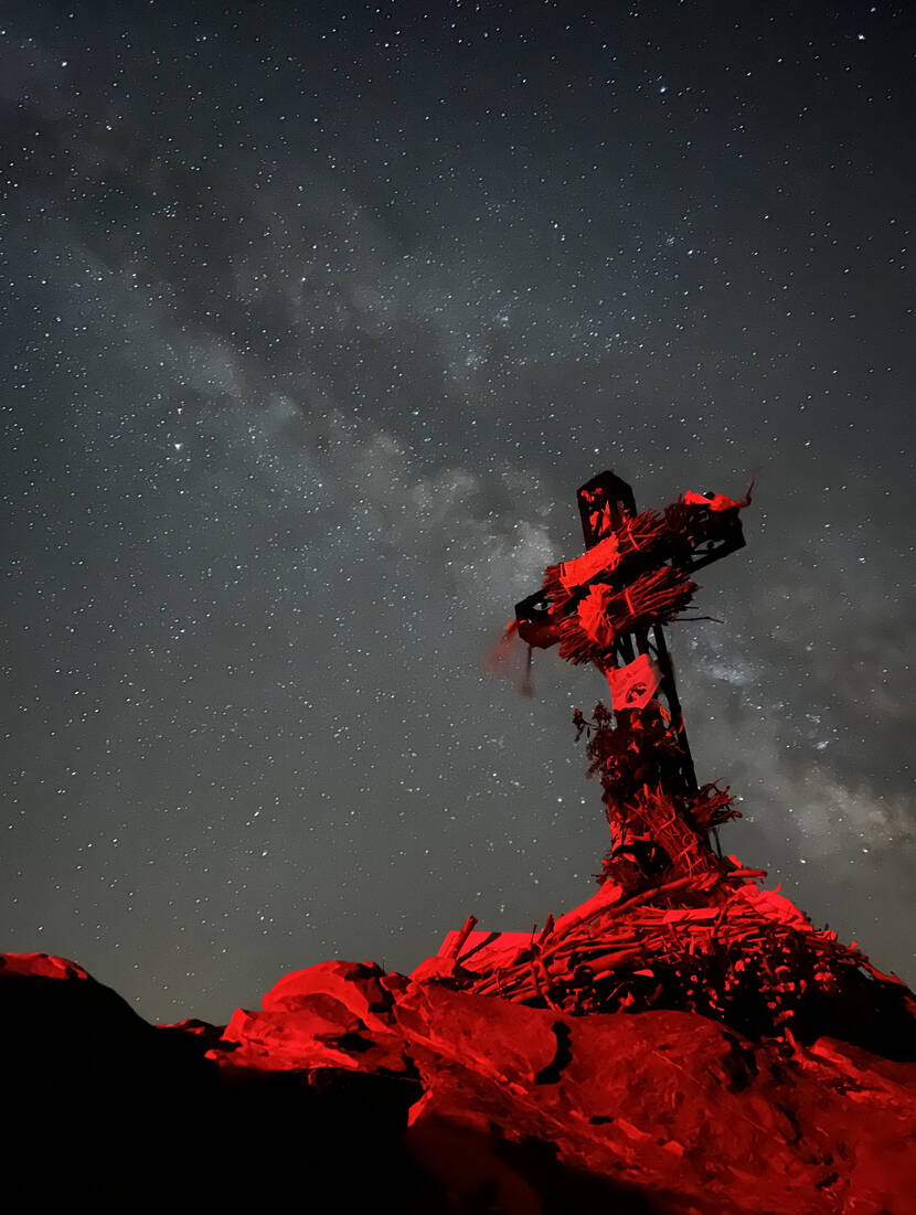 Une heure est passée depuis la régénération et plus personne sur le pic à part nous. On décide de rester un peu plus longtemps pour prendre quelques photos de plus du ciel et profiter de la flamme qui est là juste pour nous avant de repartir.