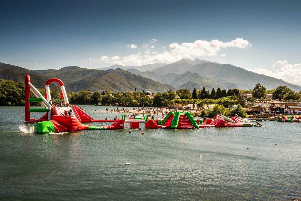 L’AQUAJUMP du Canigou au Lac des Escoumes à Vinça vous propose de multiples activités dans un cadre naturel aux pied du Canigou : AQUAJUMP (grand parc de jeux gonflables sur l’eau) , pédalos, paddles, Gelly Ball (paintball avec des microbilles de gel d’eau), châteaux gonflables terrestres et son SNACK SUCRE pour une pause gourmande.