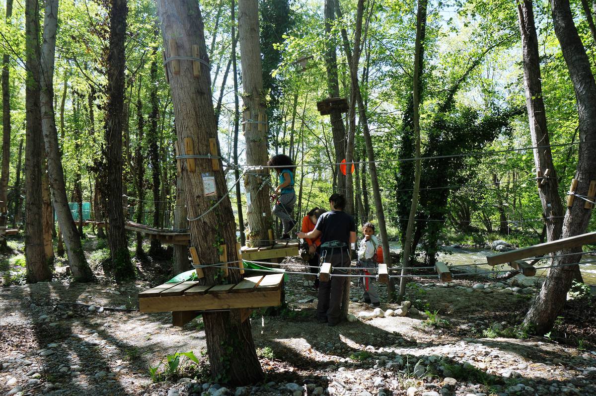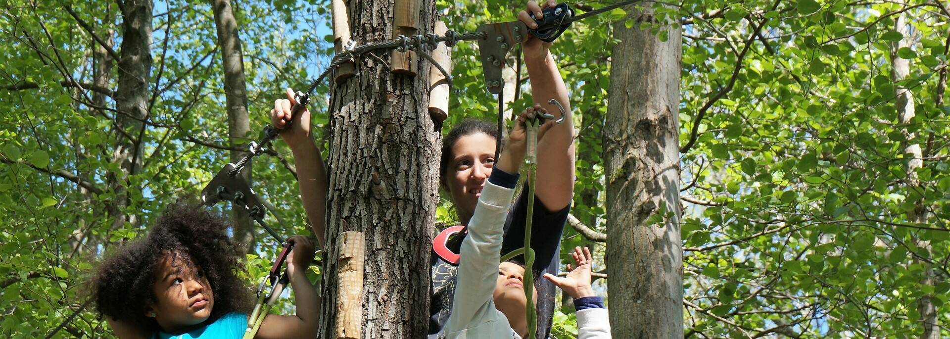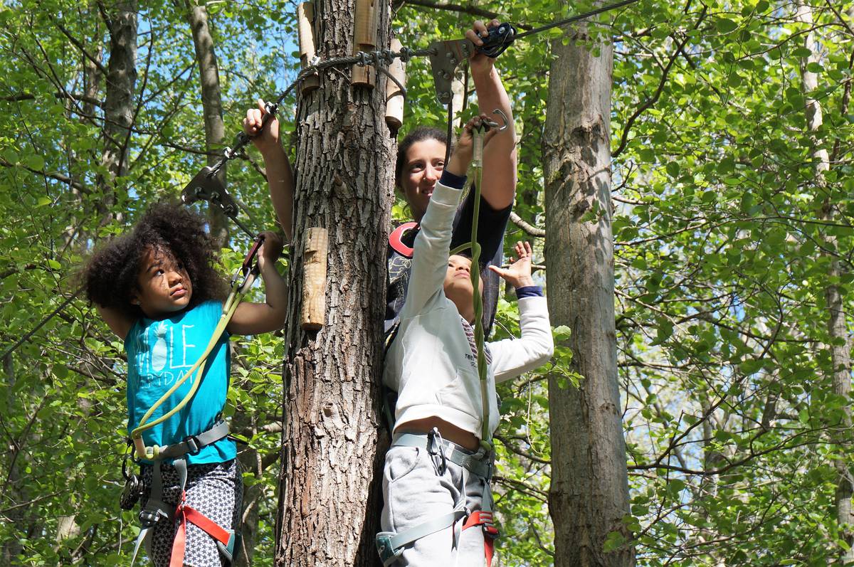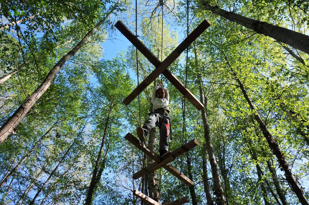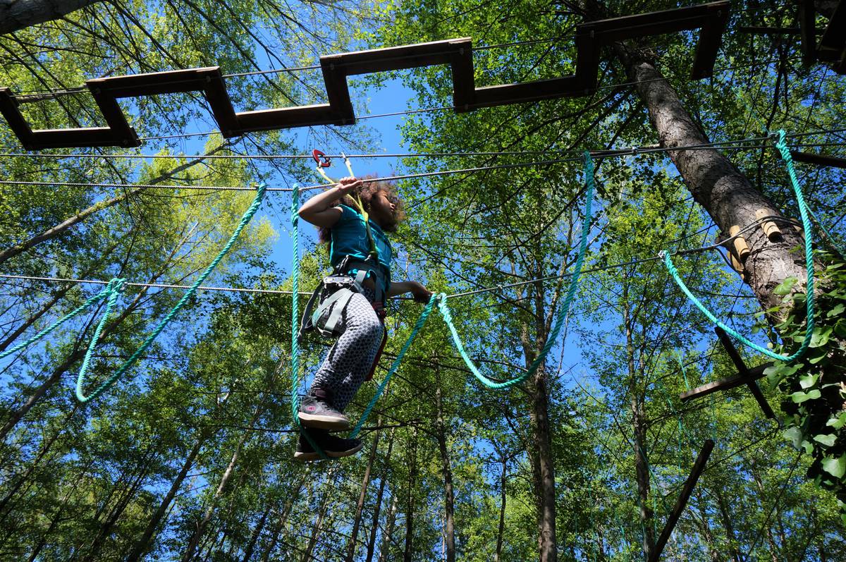 Une fois l’appréhension des premiers pas passée, et le système d’accroche par mousquetons bien en main, vous allez réellement voir vos enfants prendre plaisir à évoluer entre les filets, sur les planches de bois, de branches en branches, jusqu’à ce que vous les voyiez traverser à 3 mètres au-dessus de vous et les confondre avec Tarzan !