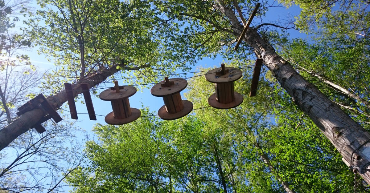 14 parcours sont possibles et accessibles dès 3 ans. Oui, même les loustics de moins de 1.20 mètres ont droit à 4 parcours avec des tyroliennes, l’attraction que tout le monde attend !