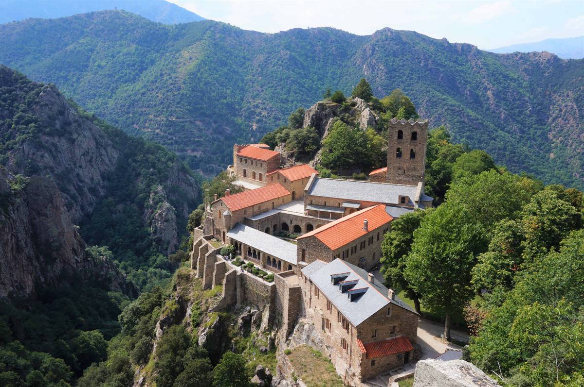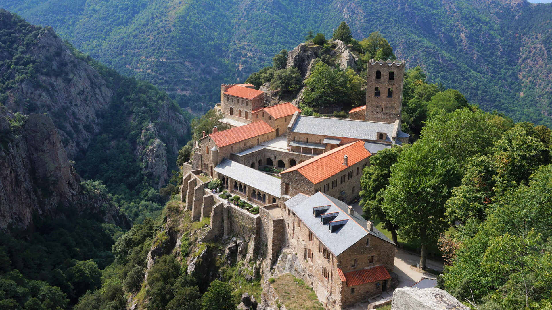 Pour terminer notre matinée, nous grimpons encore un peu afin d'admirer l'abbaye Saint-Martin du Canigou dans son écrin de nature. Un vrai moment de contemplation face à cette dernière, baignée de soleil et accrochée au massif du Canigou, si cher aux Catalans.