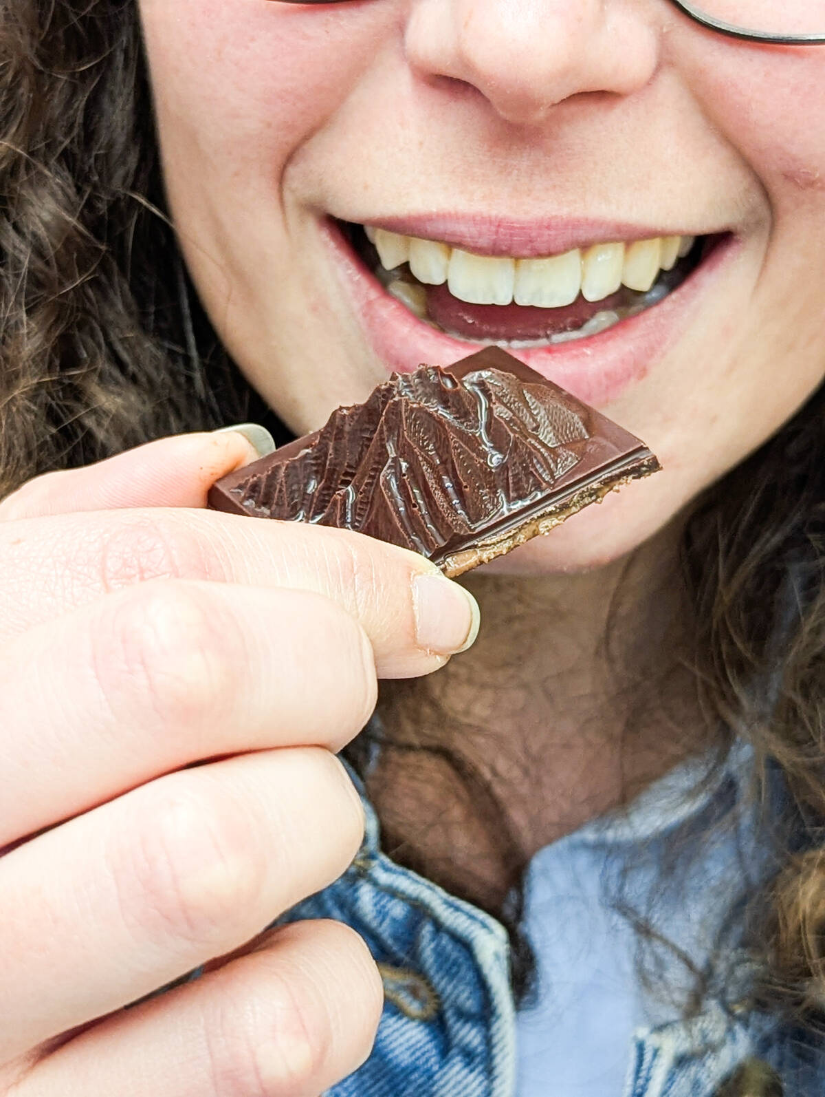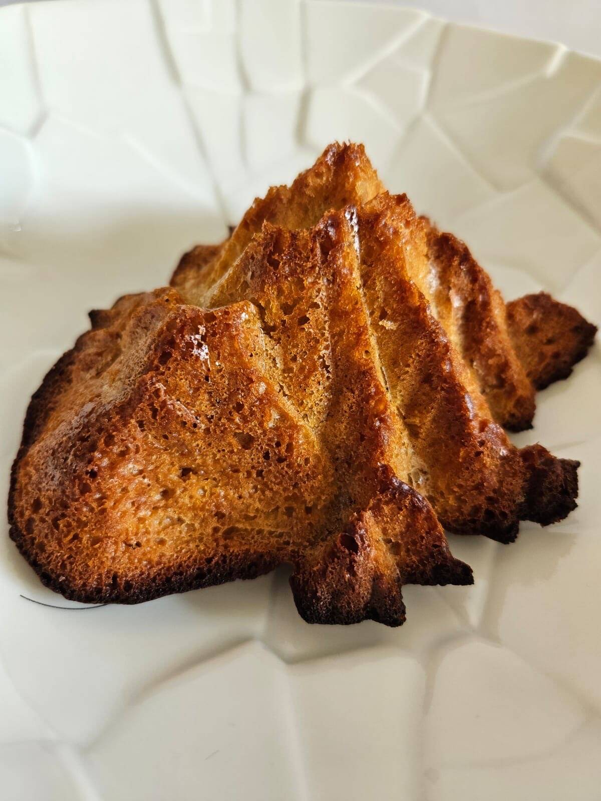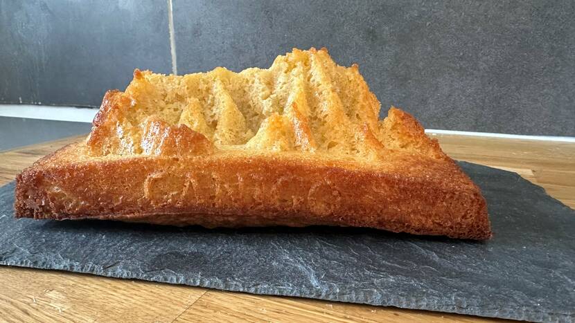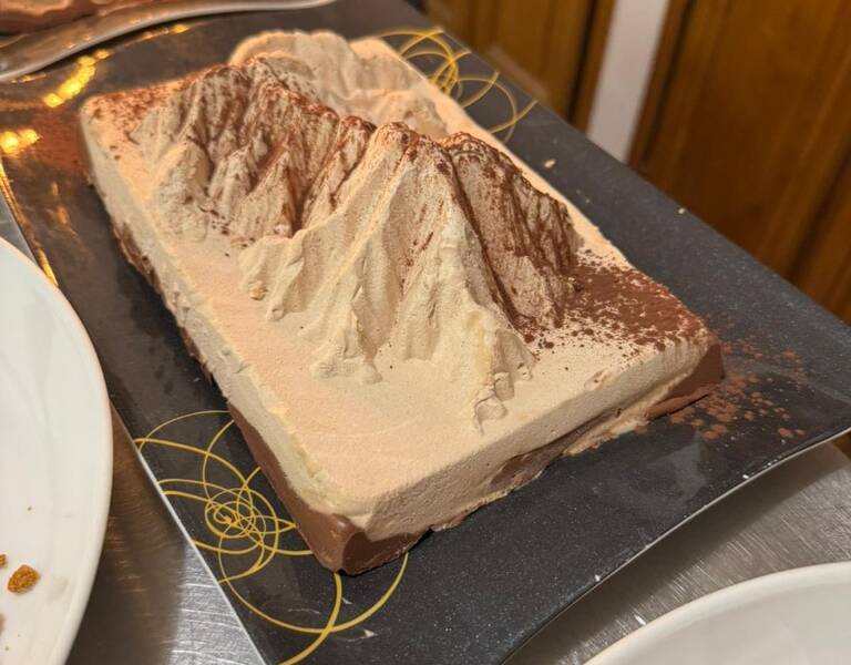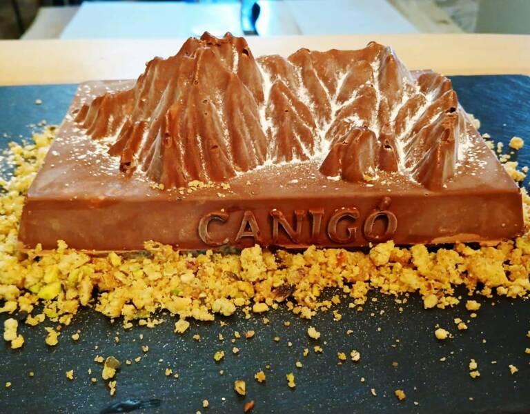 Un dessert d’altitude, tout en relief et en douceur. Sous sa silhouette inspirée du Canigó, se cachent une ganache montée onctueuse au chocolat lait-caramel, une ganache intense au chocolat noir, et un moelleux biscuit quatre-quarts. Un jeu de textures et de saveurs, entre puissance du cacao et tendresse lactée.