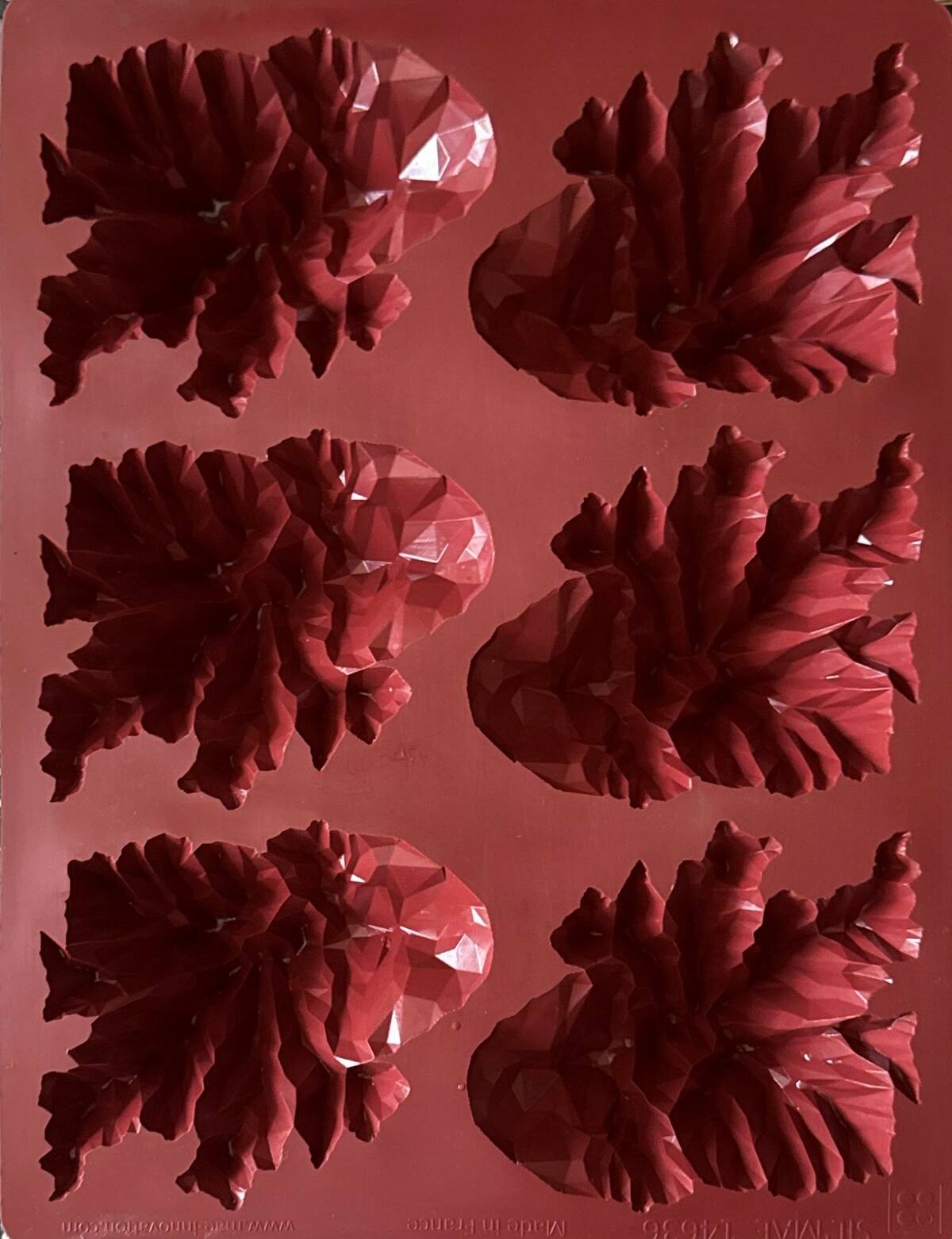 Ce moule offre une série de six sommets alignés, parfait pour une dégustation à partager...ou pas, modèle idéal pour une déclinaison de saveurs.