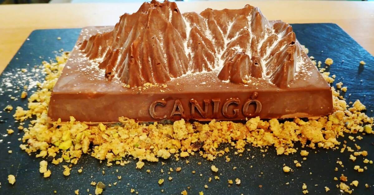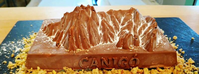 - Le glaçage : Faire chauffer la crème jusqu’à légère ébullition. Et verser sur le mélange chocolat et beurre. Mélanger jusqu’à obtenir une préparation bien lisse. Au pinceau, badigeonner généreusement le moule Canigou. Mettre au congélateur.