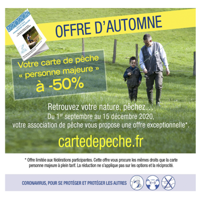 Carte de pêche annuelle : interfédérale, personne majeure, découverte femme, de 12 à 18 ans, - de 12 ans. Possibilité carte hebdomadaire ou carte journalière. Vous pouvez vous la procurer sur www.cartedepeche.fr ou chez les dépositaires suivants :